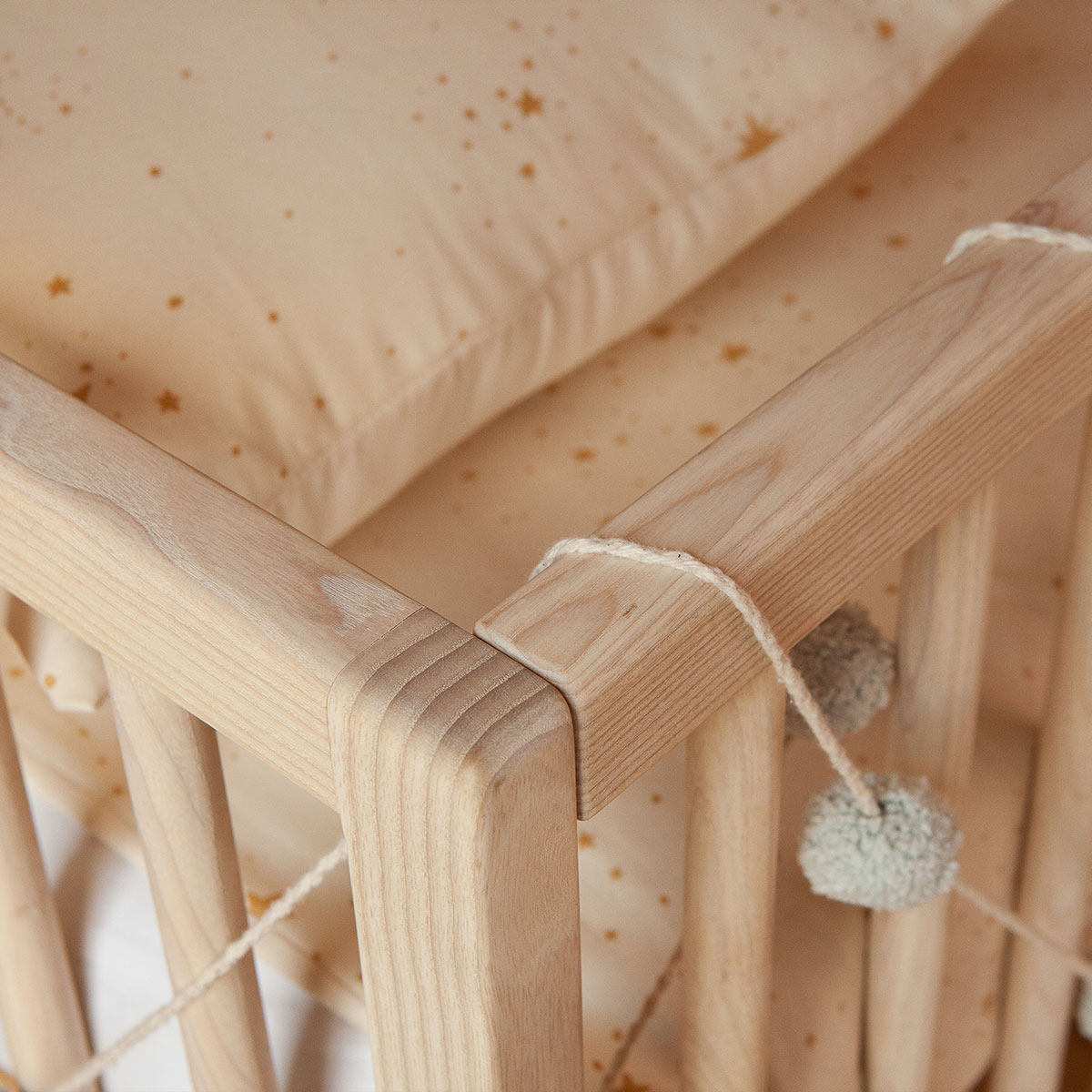 Le lit bébé Kera s'accorde parfaitement avec notre collection Nado en version frêne.